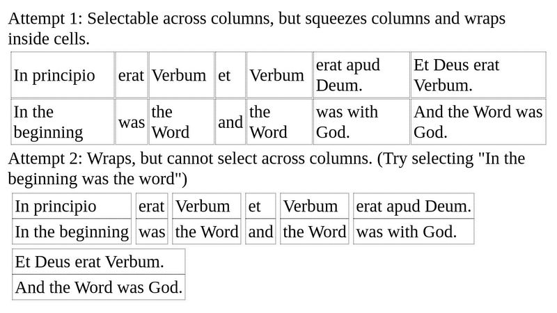 The other approach is to use flexbox and group the chunks together, but then I lose the ability to select the top or bottom sentence. (The above wiki article has this same problem). It's possible to resolve this with JS (toggle
