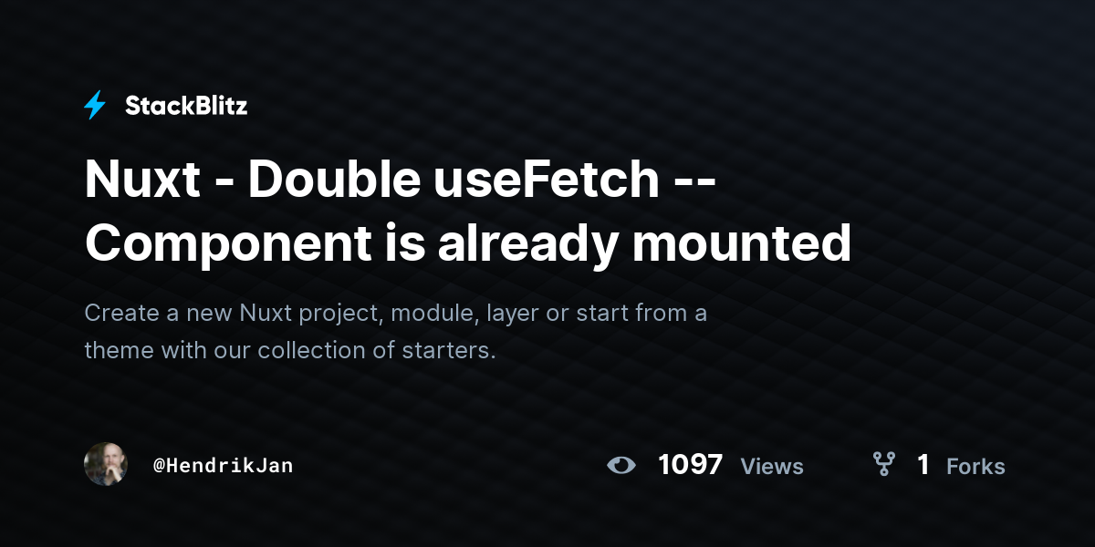 Getting error "Component is already mounted" when using "useFetch()" and changing route.