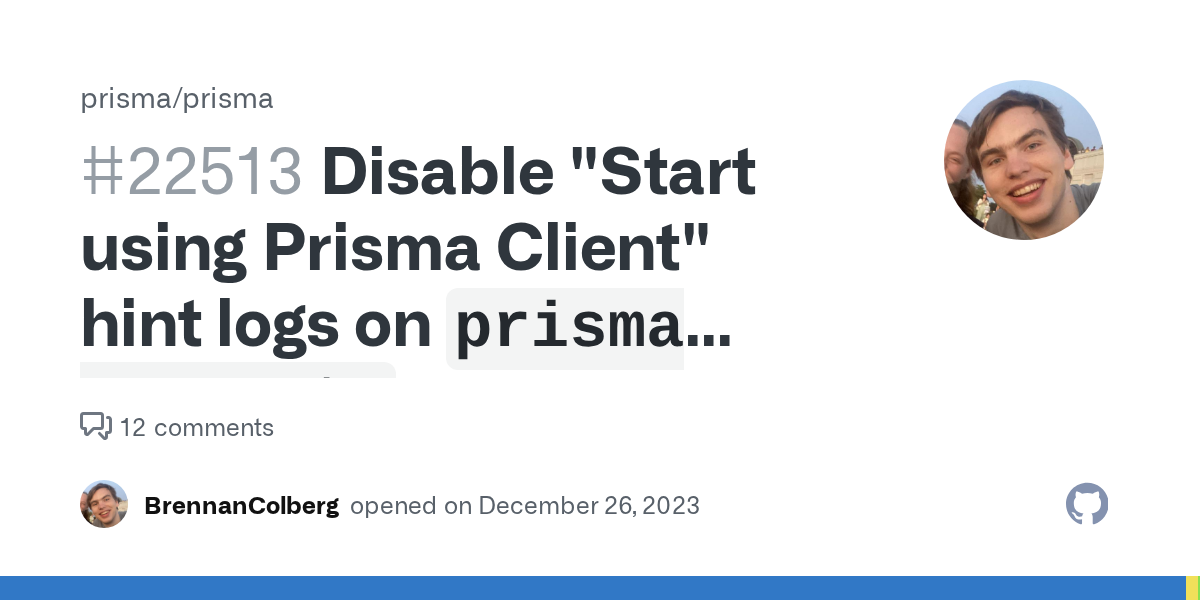 Problem This log is appended to the log of every prisma generate call: Start using Prisma Client in Node.js (See: https://pris.ly/d/client) ``` import { PrismaClient } from '@prisma/client&#...
