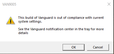Vanguard out of compliance error after latest update
