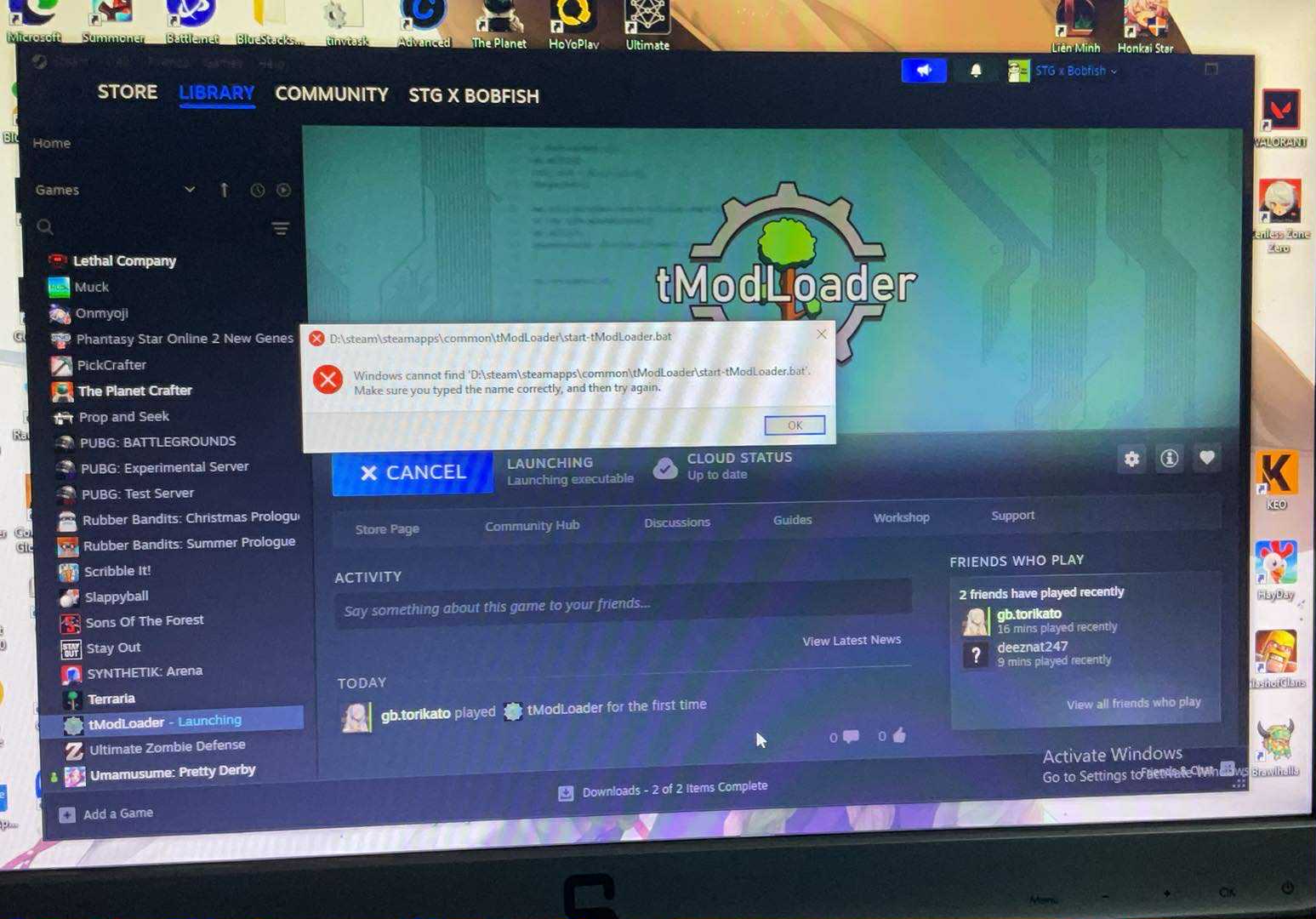 Whenever I press play, it opens up a command prompt with a lot of things saying "No such file or directory" and then closes itself without launching Terraria