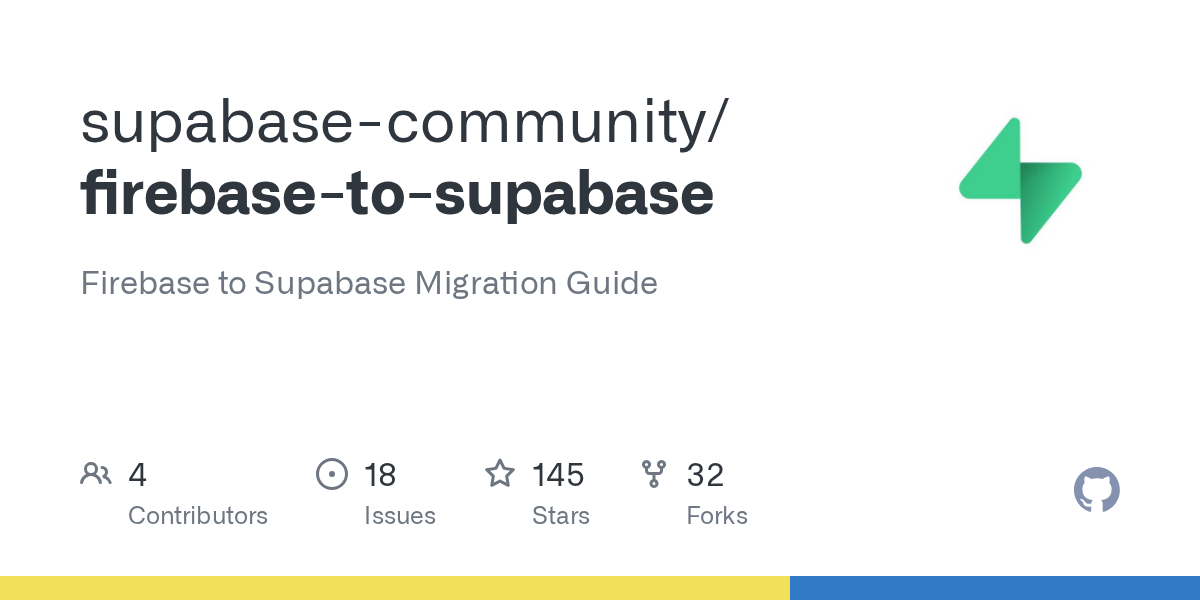 Firebase to Supabase Migration Guide. Contribute to supabase-community/firebase-to-supabase development by creating an account on GitHub.