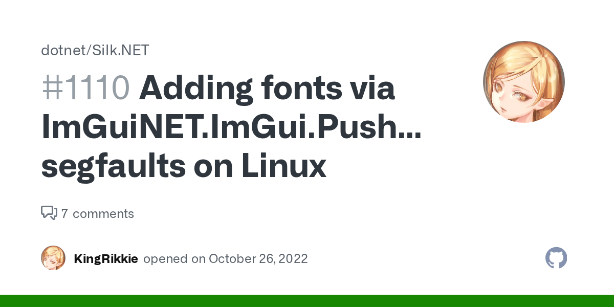 yesImGuiNET.ImGui.GetIO().Fonts.Build(); all fonts are goneImGuiNET.ImGui.PushFont actually segfaultsOnLoad():