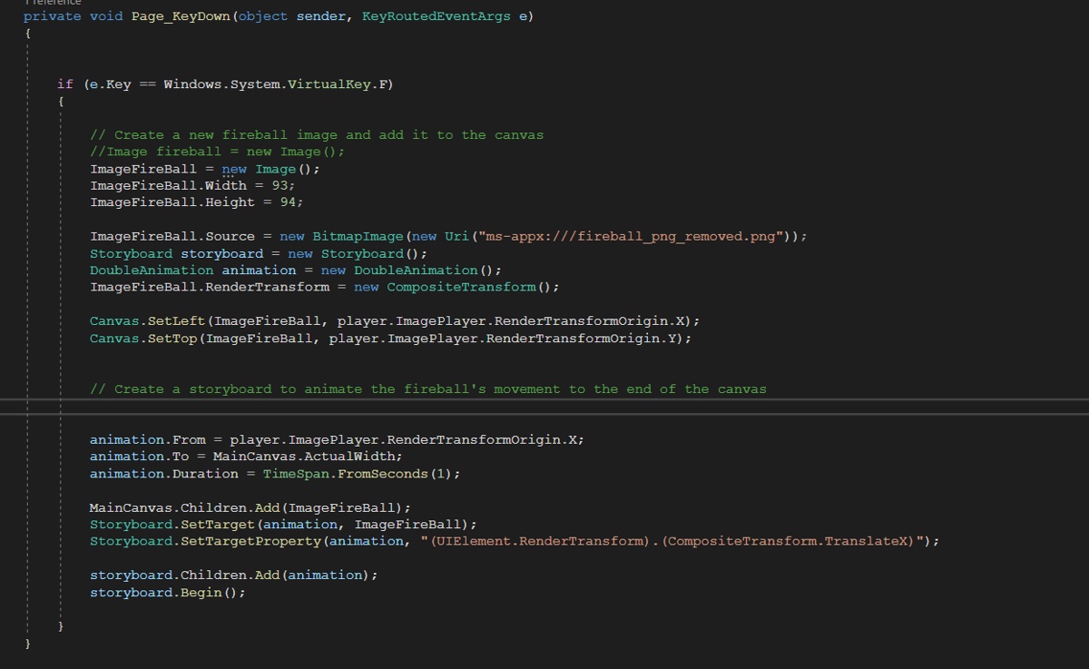 ❔ WPF game in C# having trouble attaching the "fireball" (image) to the player(ImagePlayer)