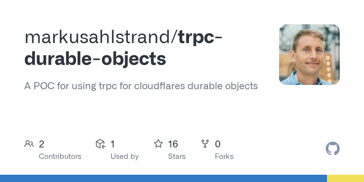new Date().getTime() + 5000 for a 5 second delay) and in the alarm handler just call .deleteAll()npm i trpc-durable-objects. There are no other projects in the npm registry using trpc-durable-objects.