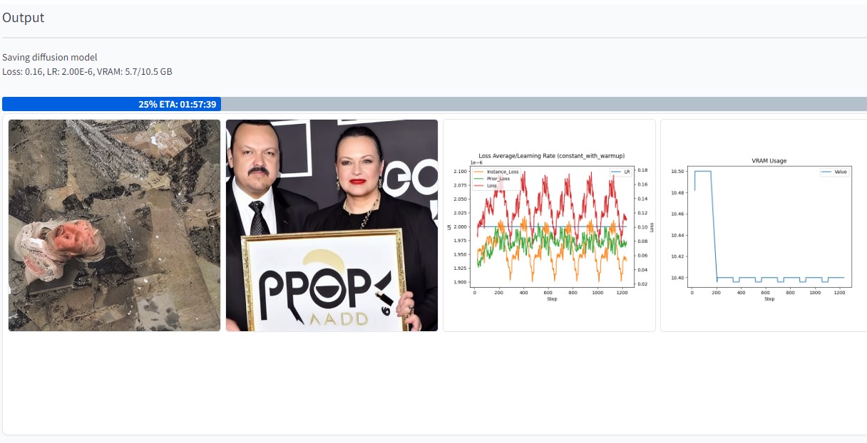 Hi! I´m learning how to train models following this tutorials. I´m training my first one and in the preview output there are 4 images the first one is super random, nightmarish, the second one looks like the person I´m trying to model and then there are two graphics that I don´t understand and don´t know how to real:
