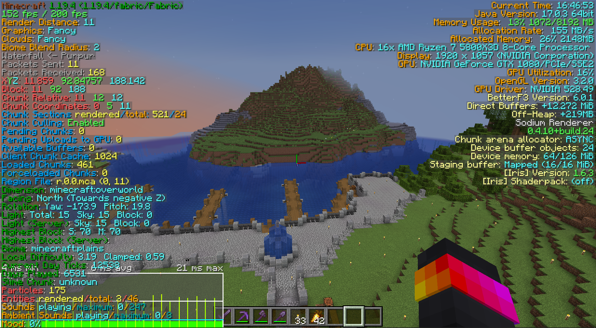 Running w/o v-sync, 200fps cap, and as you can tell by the screenshot I am getting frame drops all the time. Latest sodium, and Iris, and Minecraft 1.19.4.