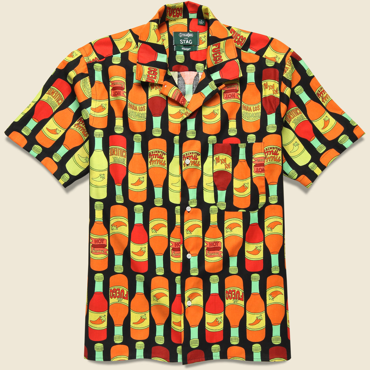 - Gitman Vintage. I have a soft spot in my heart for fugly Gitman prints, but I'm worried that this one in particular jumps the shark too deep into Guy Fieri core. https://stagprovisions.com/collections/tops-short-sleeve-shirts/products/fuego-camp-shirt-black