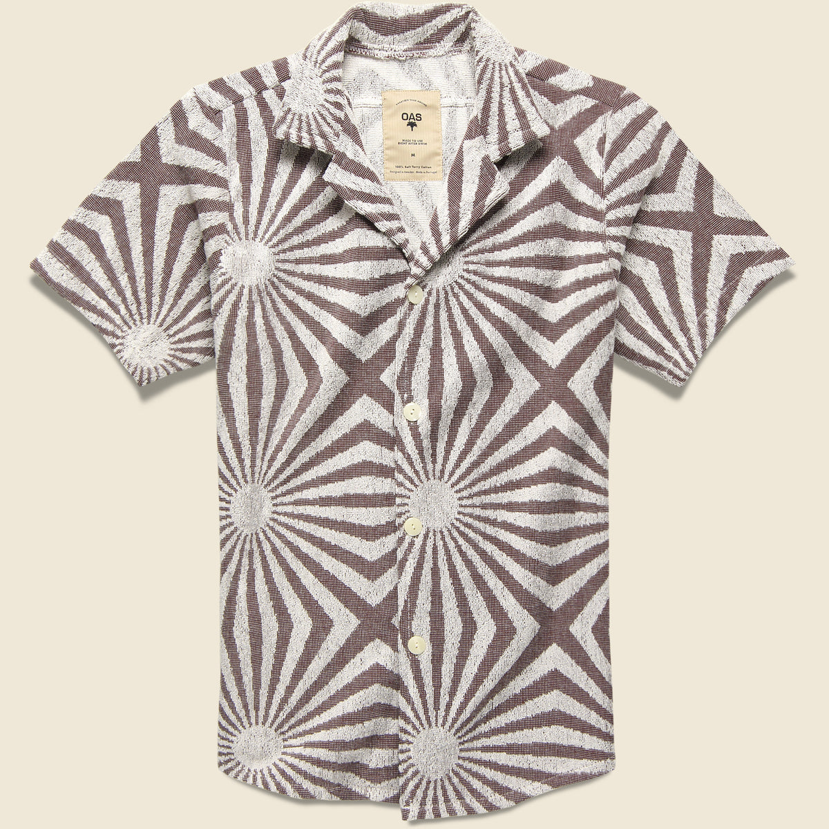 - OAS. I dig the print, I'm generally curious with the fact that it's made of cotton terry. I'm less sure about the fit since it's cut narrow in the shoulders apparently. https://stagprovisions.com/collections/tops-short-sleeve-shirts/products/cortado-terry-shirt-brown-cream