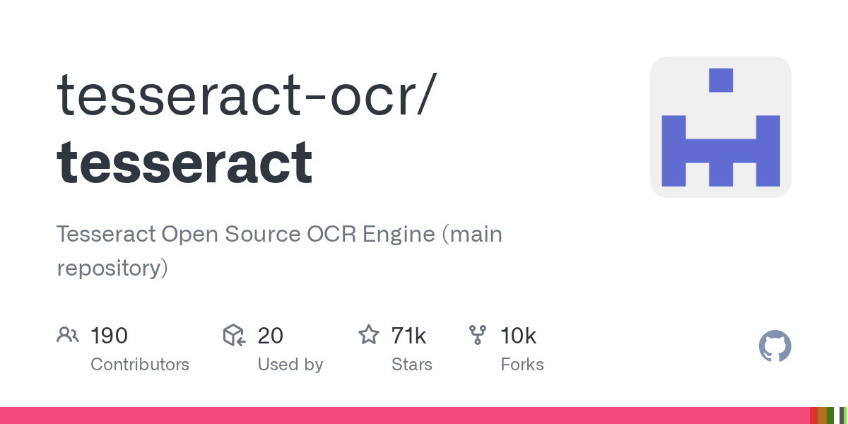 Tesseract Open Source OCR Engine (main repository) - GitHub - tesseract-ocr/tesseract: Tesseract Open Source OCR Engine (main repository)
