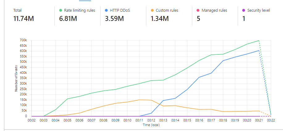 Update: Mitigating another attack. Context: DDoS protection has detected a lot of suspicious requests, and our backend health checks are failing. Looking at the Cloudflare dashboard, we can see that many requests are being blocked, but still, a lot are reaching our backend system. To handle this situation, we can take the following steps: ...