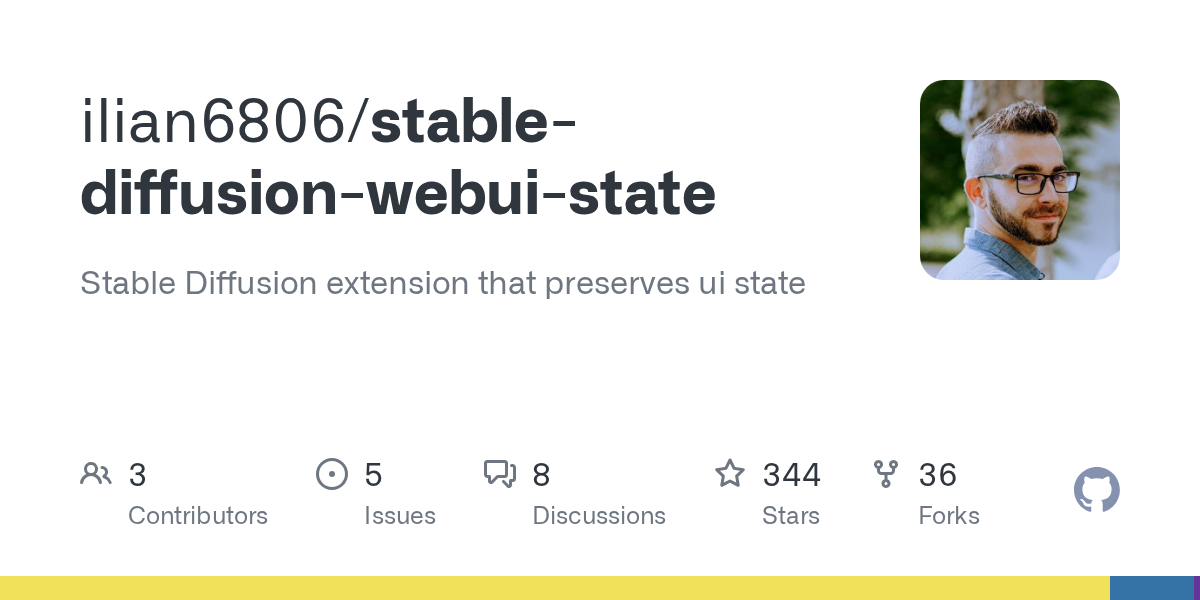 Stable Diffusion extension that preserves ui state - GitHub - ilian6806/stable-diffusion-webui-state: Stable Diffusion extension that preserves ui state