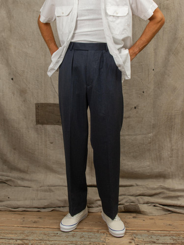 Item: British Royal Air Force Dress TrousersOrigin: United KingdomCondition: GreatColor: NavyMaterial: 60% Wool / 40% Polyester Comments: To help you choose size; If you are a 32", go for 32-34". Nathaniel is 184 cm tall, slim build and wears 30-32" (84 cm).All trousers come in different lengths, usually adapted after the height of the previous...
