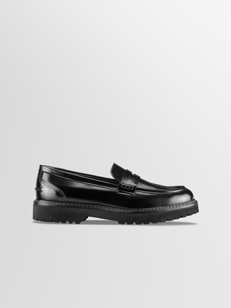 The Arezzo's chunky lug sole lends the classic loafer silhouette a cool, bold look. Handcrafted in Italy from smooth Nero Italian leather, it has a penny slot at the vamp and exposed hand-stitching along the collar. Handmade in Tuscany, Italy Constructed from LWG Silver-certified Italian leather (Cow) Set on a EVA sole