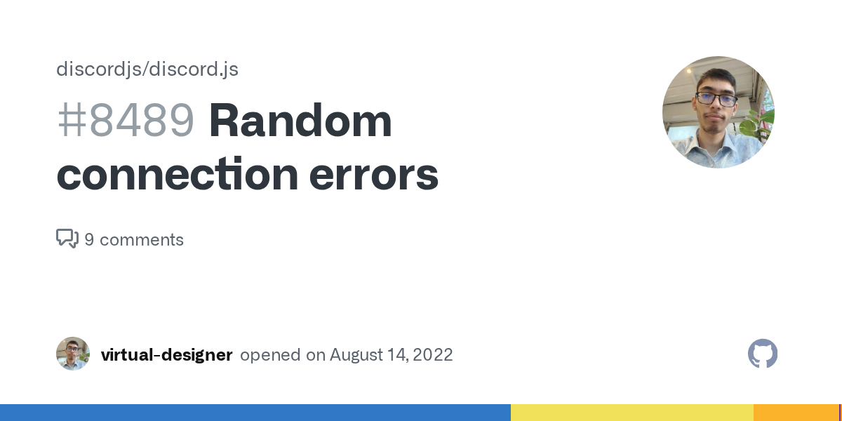Which package is this bug report for? discord.js Issue description Random connection errors especially when using slash commands. I'm 100% sure my connection is strong enough. The error is give...