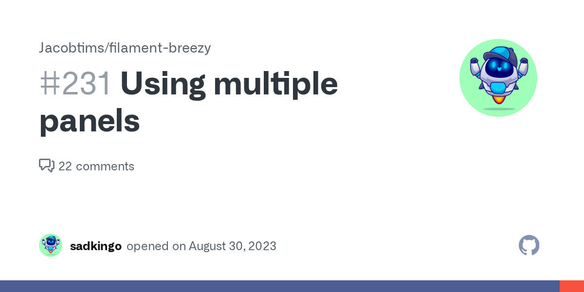 when i try to use Breezy in my second panel i get this error : Trying to access array offset on value of type null when i remove it from the default panel i get this : Plugin [filament-breezy] is n...