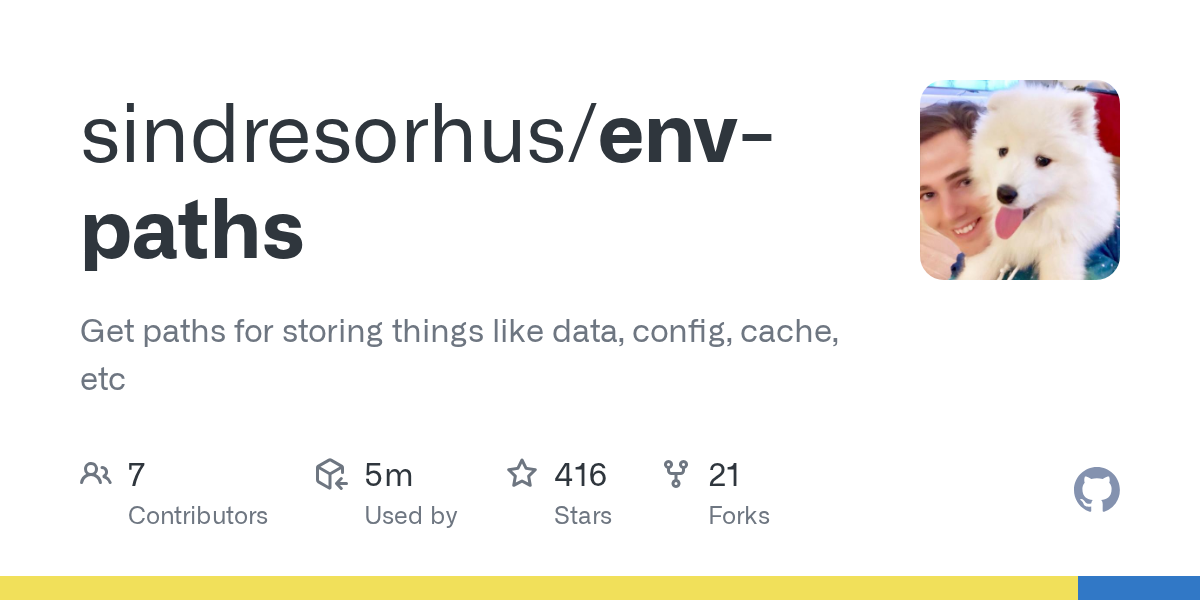 Get paths for storing things like data, config, cache, etc - GitHub - sindresorhus/env-paths: Get paths for storing things like data, config, cache, etc