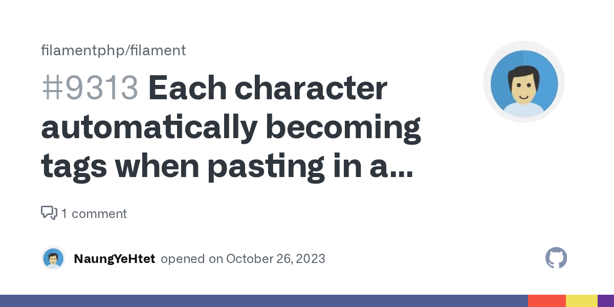 Package filament/filament Package Version v3.0.0 Laravel Version v10.10 Livewire Version No response PHP Version 8.2 Problem description When pasting texts into the TagsInput field, every character...