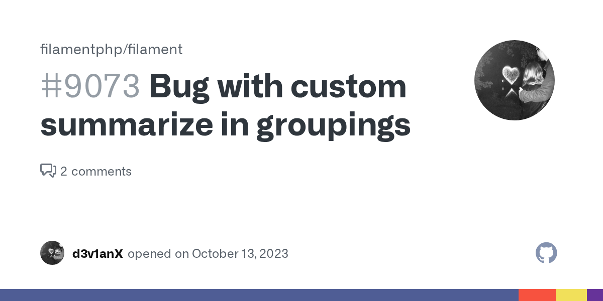 ) AS "". I dug into the Summarizer.php file on line 108. $query = DB::table($query->toBase());I haven't really looked at the source code for any of the Filament query stuff before it I changed the line to