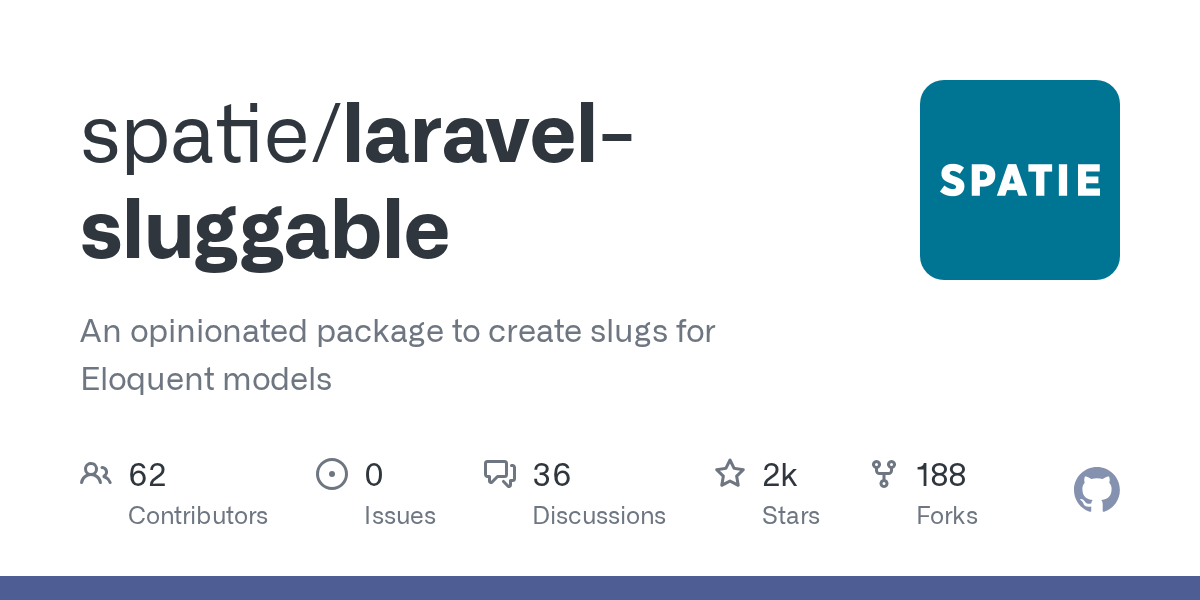 An opinionated package to create slugs for Eloquent models - GitHub - spatie/laravel-sluggable: An opinionated package to create slugs for Eloquent models