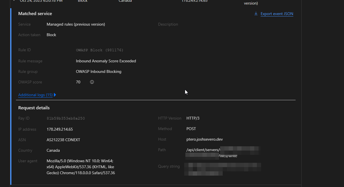 Any reason this is happening? I don't have any managed rules active, tried whitelisting the hostname too but the issue still occurs: