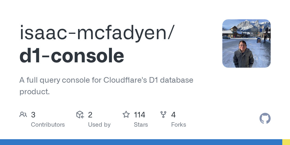 A full query console for Cloudflare's D1 database product. - GitHub - isaac-mcfadyen/d1-console: A full query console for Cloudflare's D1 database product.