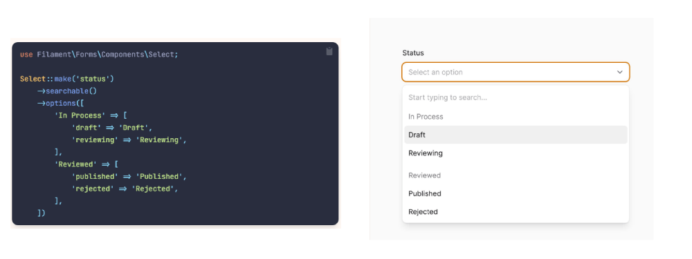 Eg: in an Invoice Filament resource creation page, I'll have a Select field with the relationship "prices", and the prices should be grouped by their "products" which is a HasMany relationship (Products has many prices - price belongs to product), and of course the user will select the prices not the products, just like Stripe: