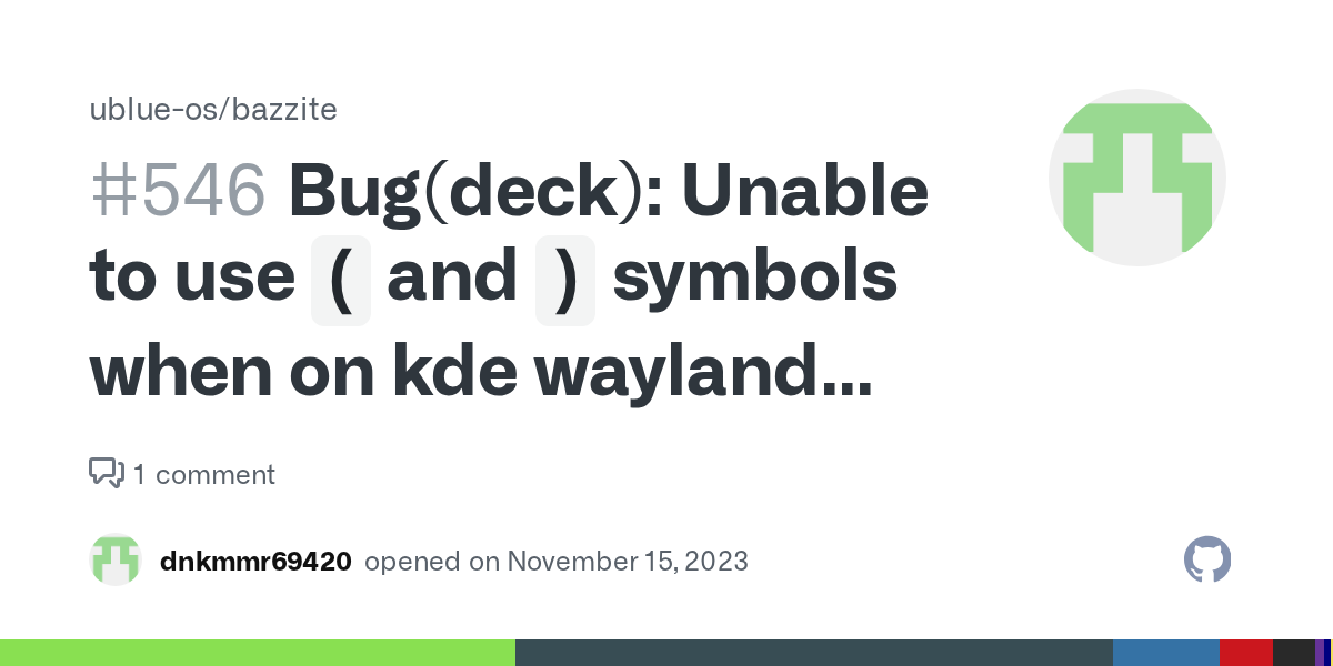( and ) symbols when on kde wayland but it works fine on xorg. Link to issue: https://github.com/ublue-os/bazzite/issues/546GitHub