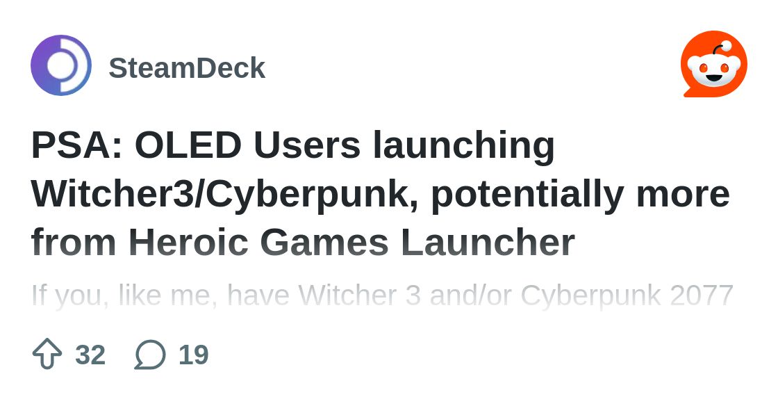 I tired: https://old.reddit.com/r/SteamDeck/comments/1865a46/psa_oled_users_launching_witcher3cyberpunk/