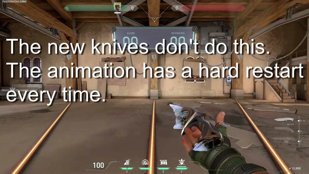 The new Valorant Sentinel of Light 2.0 knives, 'Relic Stone Daggers', do not spin/roll/whatever it's called.
