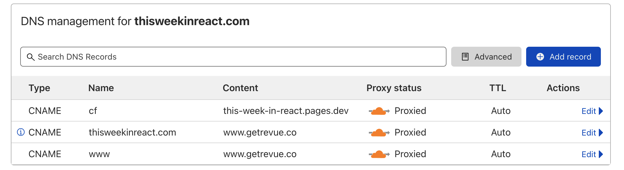 The problem was not when displaying the page, but rather when submitting the subscription form (calling Revue API with a POST request) The CF proxy was already turned on: And we can subscribe successfully with these 2 URLs (same deployment) https://cf.thisweekinreact.com/ https://this-week-in-react.pages.dev/ I did not change anything si...
