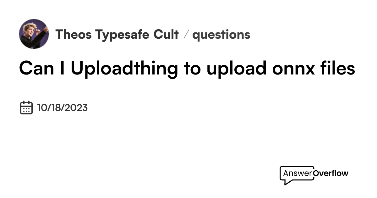 ERROR! Invalid config.Error: Could not determine type for relu1.onnx, presigned URL generation failed at getTypeFromFileName Can I use uploadthing to upload .onnx (and custom file types) using uploadthing? I Had issues uploading .onnx files in the past, but I may have been using it wrong. It wasn't in the supported file types and I tried to use