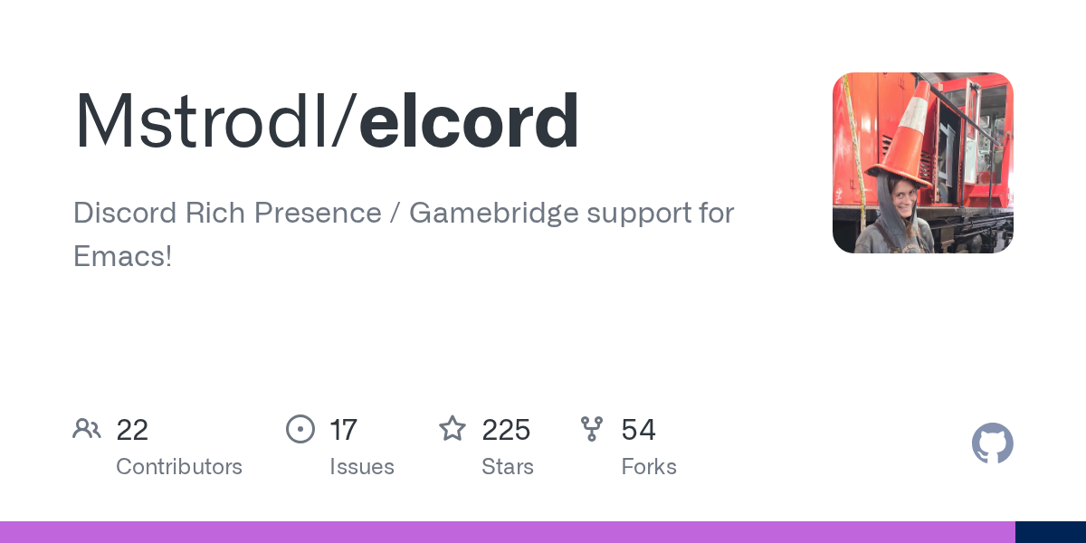 Discord Rich Presence / Gamebridge support for Emacs! - GitHub - Mstrodl/elcord: Discord Rich Presence / Gamebridge support for Emacs!