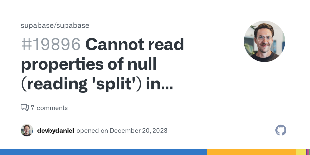 Bug report I confirm this is a bug with Supabase, not with my own application. I confirm I have searched the Docs, GitHub Discussions, and Discord. Describe the bug I am seeing TypeError - Cannot r...