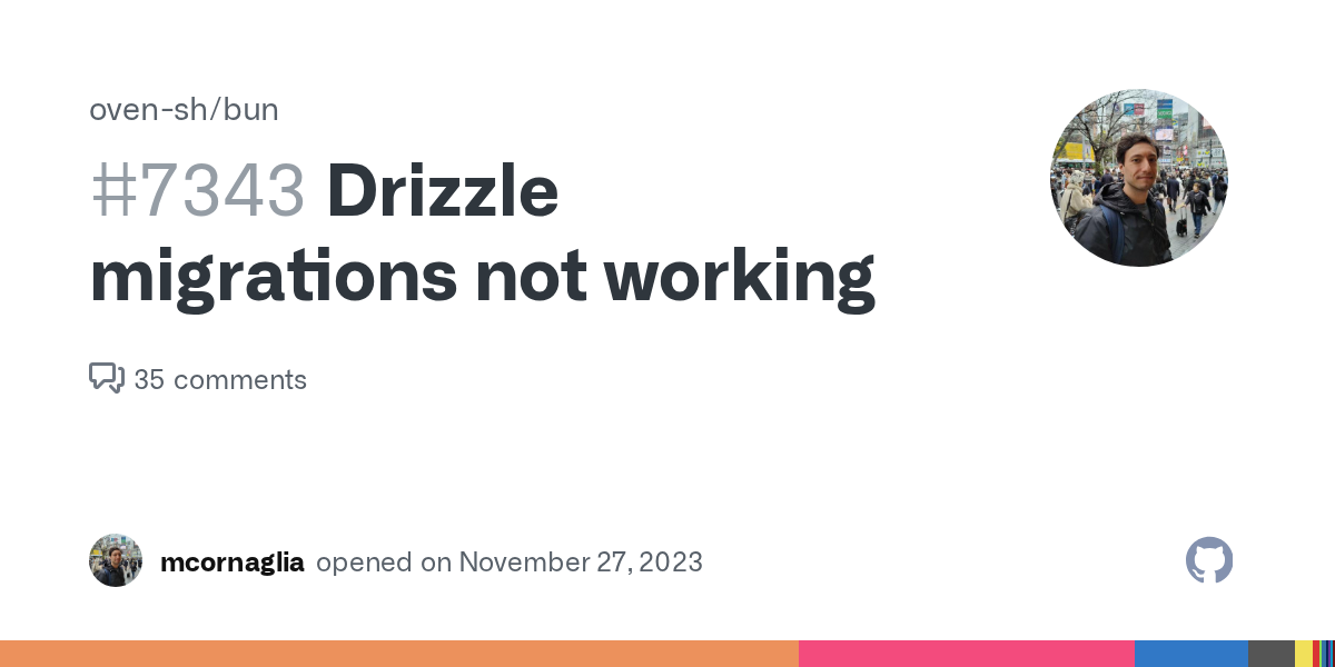 What version of Bun is running? 1.0.14+d8be3e51b What platform is your computer? Microsoft Windows NT 10.0.22631.0 x64 What steps can reproduce the bug? bun add drizzle-orm postgres bun add -D driz...