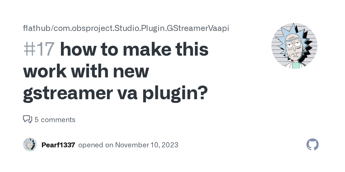 With the flatpak versions of obs an gstreamervaapi plugin i am only seeing the legacy option. My flatpak list | grep obs output: OBS Studio com.obsproject.Studio 29.1.3 stable system OBS VkCapture ...