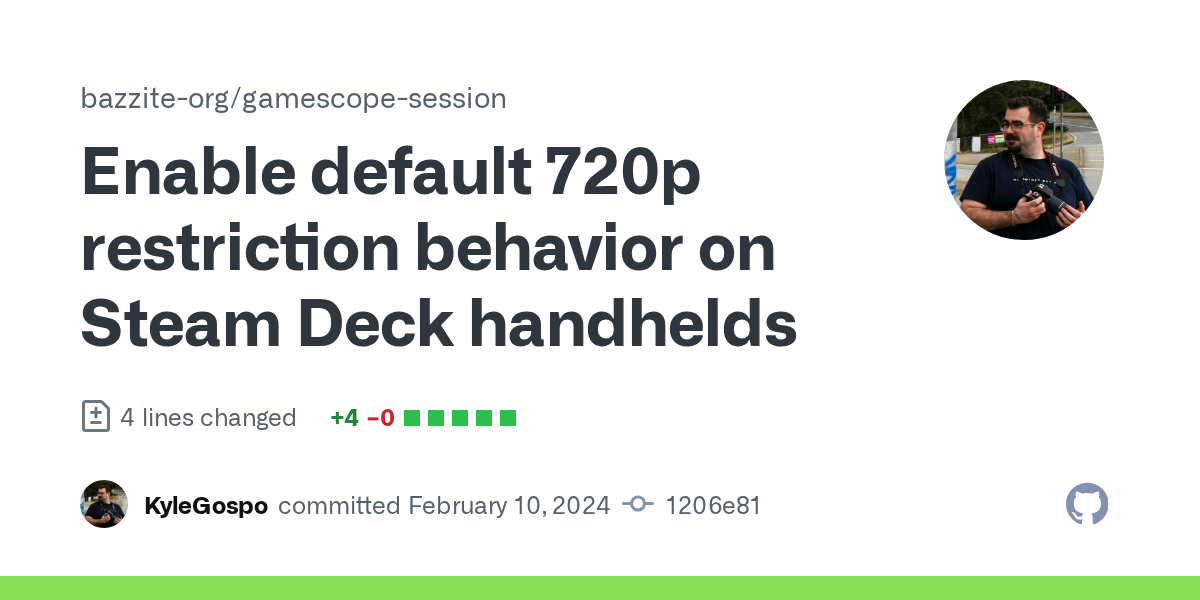 This patch allows for an environment variable, GAMESCOPE_ENABLE_720P_RESTRICT, to be set to re-renable the 720p restriction that Steam sets, ideal for setups such as mine on Steam Deck that have sc...