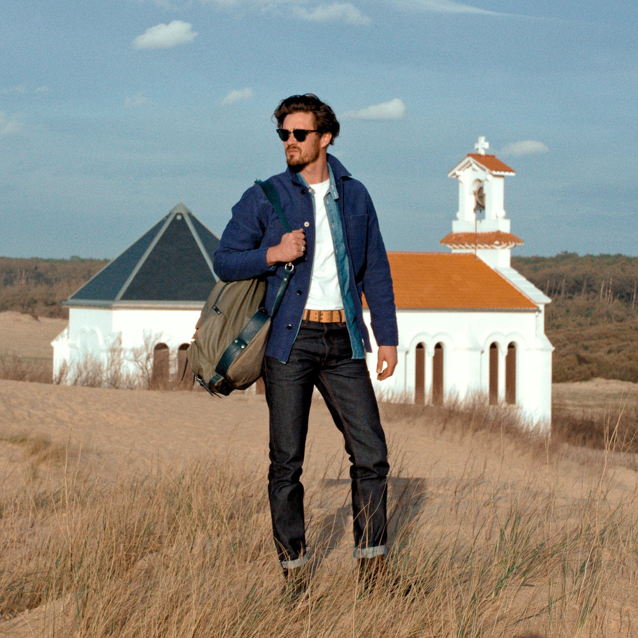 Work jacket made with a unique moleskin fabric; very thick 420 g/m², created especially for the field of maneuvers. 2. The jacket is entirely handcrafted in France. 3. Natural corozo button. 4. Vintage faded effect, used patina.