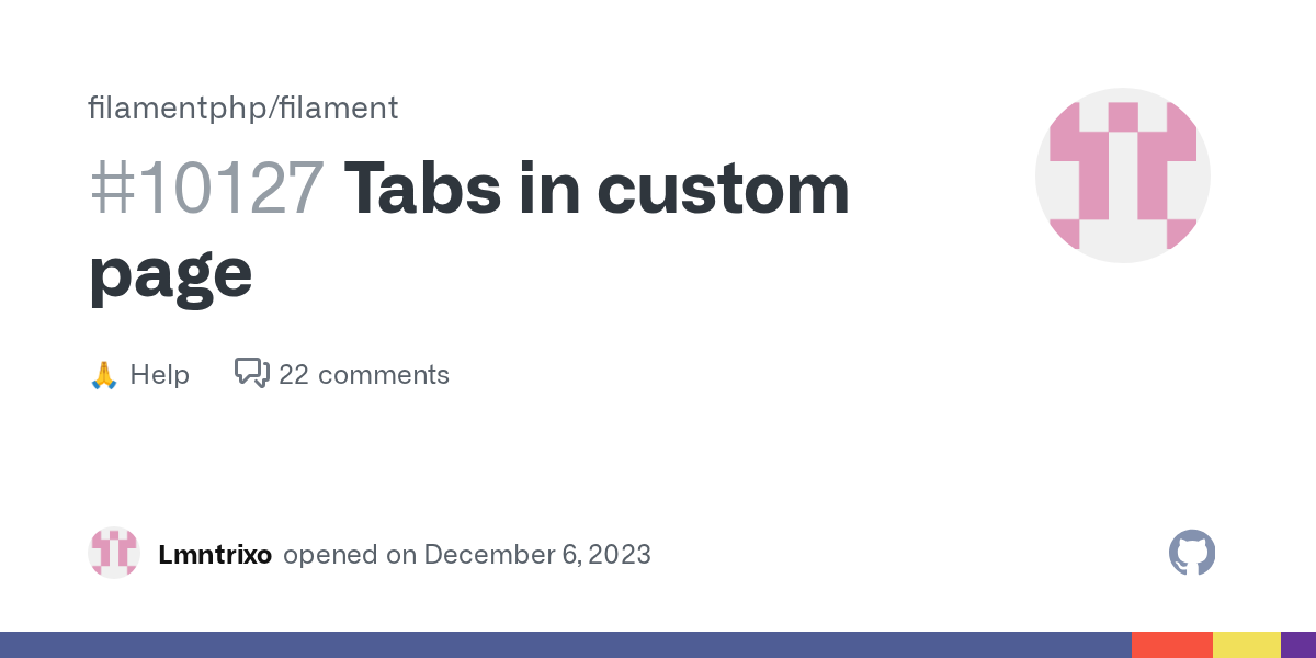 hello there! please need a help on how to make a tabs on custompage in filament? i have create a custom page named product linked with a resource named categoryResource.Then when i tried to use the...