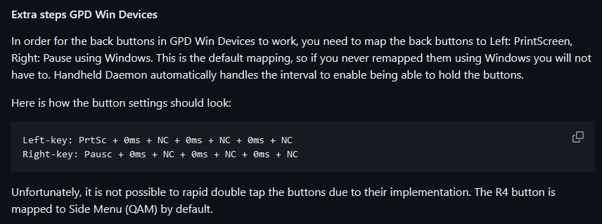 Hi! This might sound like a dumb question, but I have a GPD Win 4, which doesn't have a secondary menu button. I haven't found a way to open the Handheld Daemon overlay, as it tells me that I need to press the secondary menu button twice to open it, but I don't have that button.