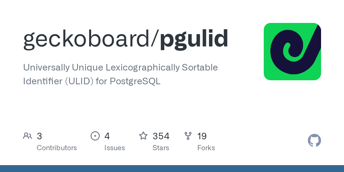 Universally Unique Lexicographically Sortable Identifier (ULID) for PostgreSQL - geckoboard/pgulid
