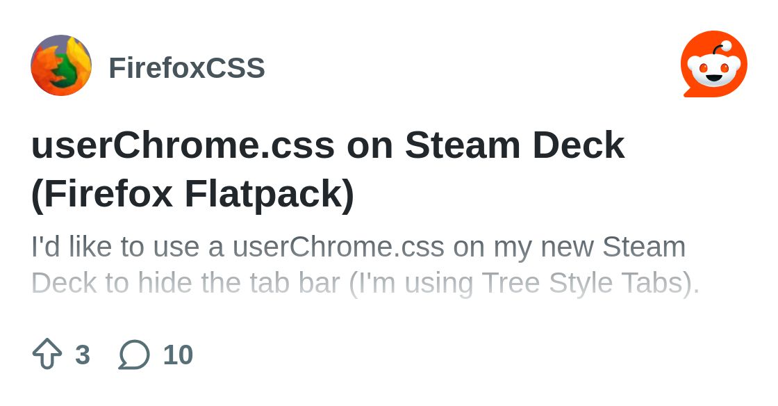 found this thread https://www.reddit.com/r/FirefoxCSS/comments/wgwxgk/userchromecss_on_steam_deck_firefox_flatpack/ looks like the location you need to be looking at is