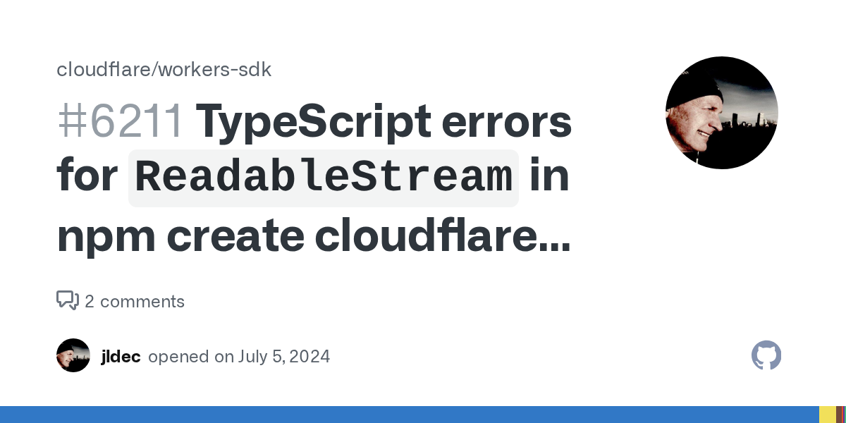 body property of a Response object, but it seems like the type declarations in @cloudflare/worker-types conflict with those in @types/node for ReadableStream. I'm a bit stumped as to why TypeScript is looking for types from @types/node. Anyone else run into this issue before?Here's some simple code to reproduce the issue with the default TypeScript starter: