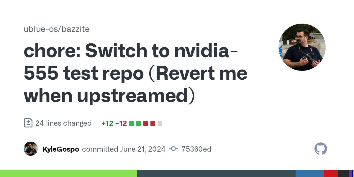 Just ran sudo rpm-ostree rebase ostree-image-signed:docker://ghcr.io/ublue-os/bazzite-nvidia:testing, I'm going to see how 555 runs on my system and report back. Obviously I know this is "unsupported" I really, really hope I don't need X11 anymore.