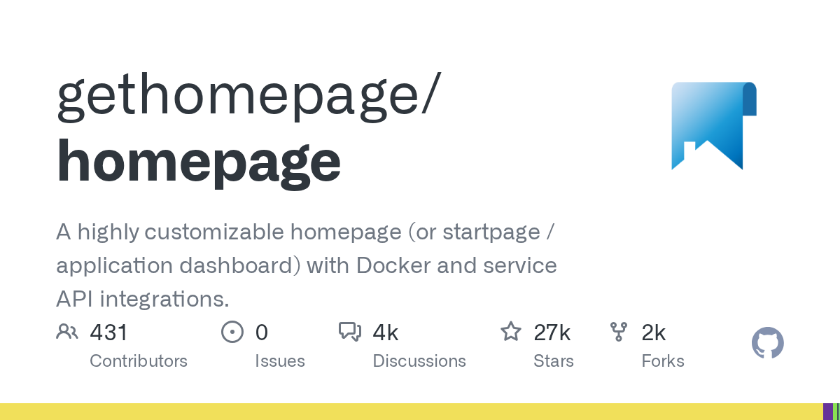 A highly customizable homepage (or startpage / application dashboard) with Docker and service API integrations. - gethomepage/homepage