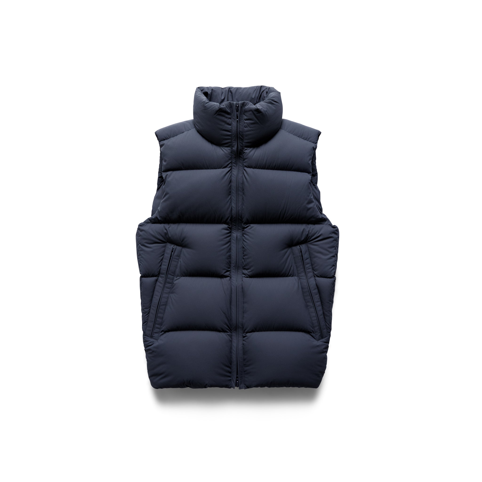 This winter-ready puffer vest features 750 fill power and a water-repellent premium ripstop shell. Designed in a classic fit, with 90/10 RDS-certified goose down insulation for total cold weather protection. Constructed with a two-way YKK Vislon zip front closure, double welt zip pockets, and an adjustable shock cord hem.