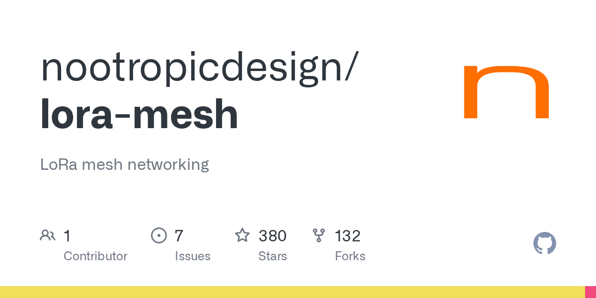 LoRa mesh networking. Contribute to nootropicdesign/lora-mesh development by creating an account on GitHub.