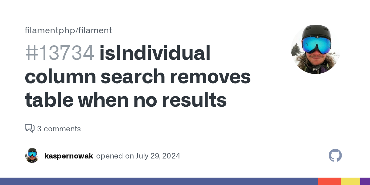 Package filament/filament Package Version v3.2.96 Laravel Version v11.7.0 Livewire Version v3.5.1 PHP Version PHP 8.2 Problem description I have a TextColumn that I want to make searchable and set ...