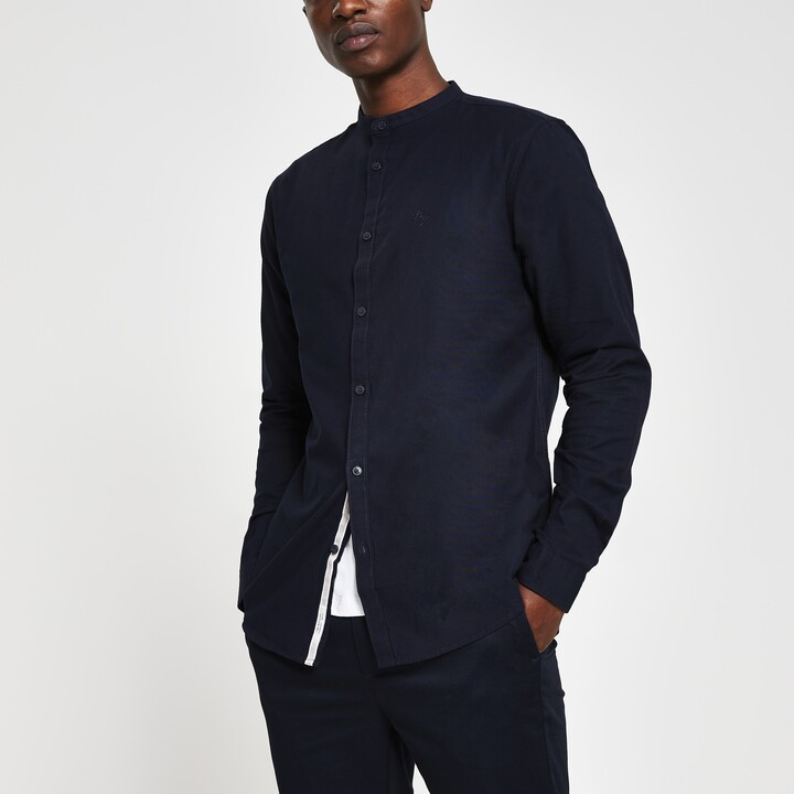 Shop for Maison Riviera Mens River Island Navy Slim Fit Grandad Collar Oxford Shirt at ShopStyle.