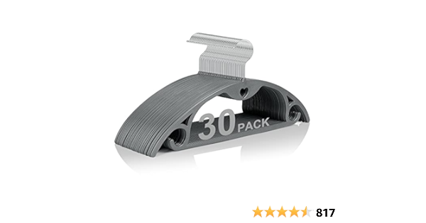 Grey Plastic Hangers 30 Pack, No Shoulder Bumps Clothes Hangers, Ultra Thin Space Saving Coat Hangers for Closet, Adult Hangers Heavy Duty for Suits Overcoats Dresses